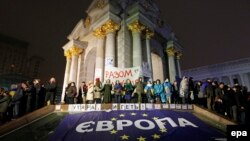 Шыян: Мне думаецца, асноўнае адрозьненьне ў тым, што людзі цяпер не выступалі за зьмену ўлады. Людзі не патрабуюць імпічмэнту Януковіча. Гэтага патрабуе толькі палітычная апазыцыя. А самі людзі патрабуюць аднавіць перамовы з Эўропай. Пасьля Памаранчавай рэвалюцыі людзі тут вельмі моцна расчараваныя ў палітычных дзеячах. І вельмі часта даводзіцца чуць думку, што насамрэч апазыцыя ўсё псуе сваімі дзеяньнямі і лёзунгамі, бо ўсё зьмяшалася. Калі зьбіраліся, напрыклад, студэнты політэхнічнага інстытуту, іншая моладзь, арганізатары прасілі ўсіх ня браць з сабой ніякай партыйнай сымболікі. Толькі сьцягі Ўкраіны і Эўразьвязу.