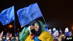 Актывісты, якія патрабуюць скасаваць урадавае рашэньне аб прыпыненьні эўраінтэграцыі, працягваюць заставацца на Майдане Незалежнасьці і Эўрапейскай плошчы ў Кіеве.