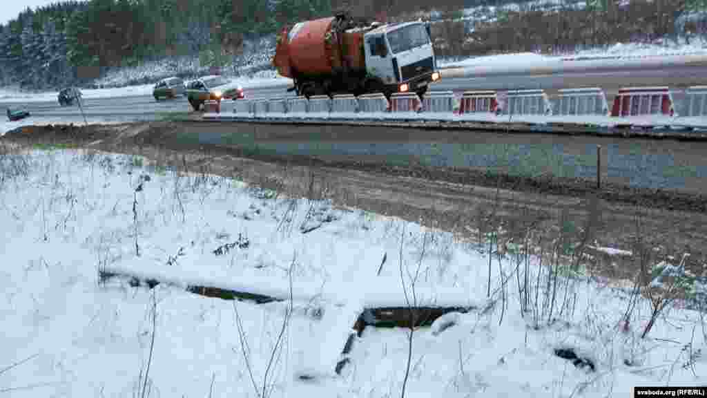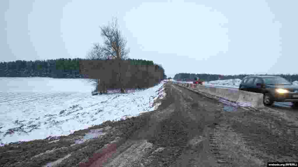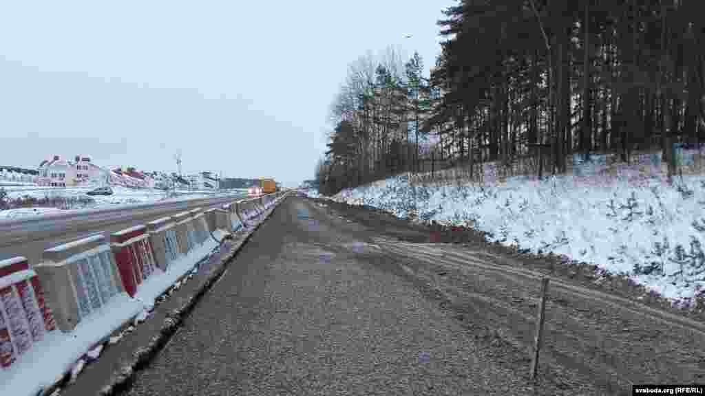 Пашырэньне дарогі вядзецца каля новага пасёлка Сонечны з поўначы Курапатаў.