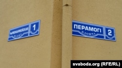 Ад вакзала да плошчы Паўстаньня цягнецца праспэкт Перамогі. Да нядаўняга часу гэта была проста вуліца Перамогі. Але пасьля рэканструкцыі гарвыканкам пастанавіў перайменаваць вуліцу ў праспэкт. Новыя шыльды зь ягонай назвай — спрэс па-беларуску. Ніжэй, пад беларускім надпісам, назва праспэкту падаецца лацінкай.