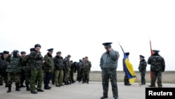 У Бельбек (база ВПС Украіны) прыбыла калёна вайскоўцаў севастопальскай брыгады тактычнай авіяцыі. Пад украінскім дзяржаўным сьцягам і сваім баявым сьцягам яны шыхтом падыйшлі да КПП.