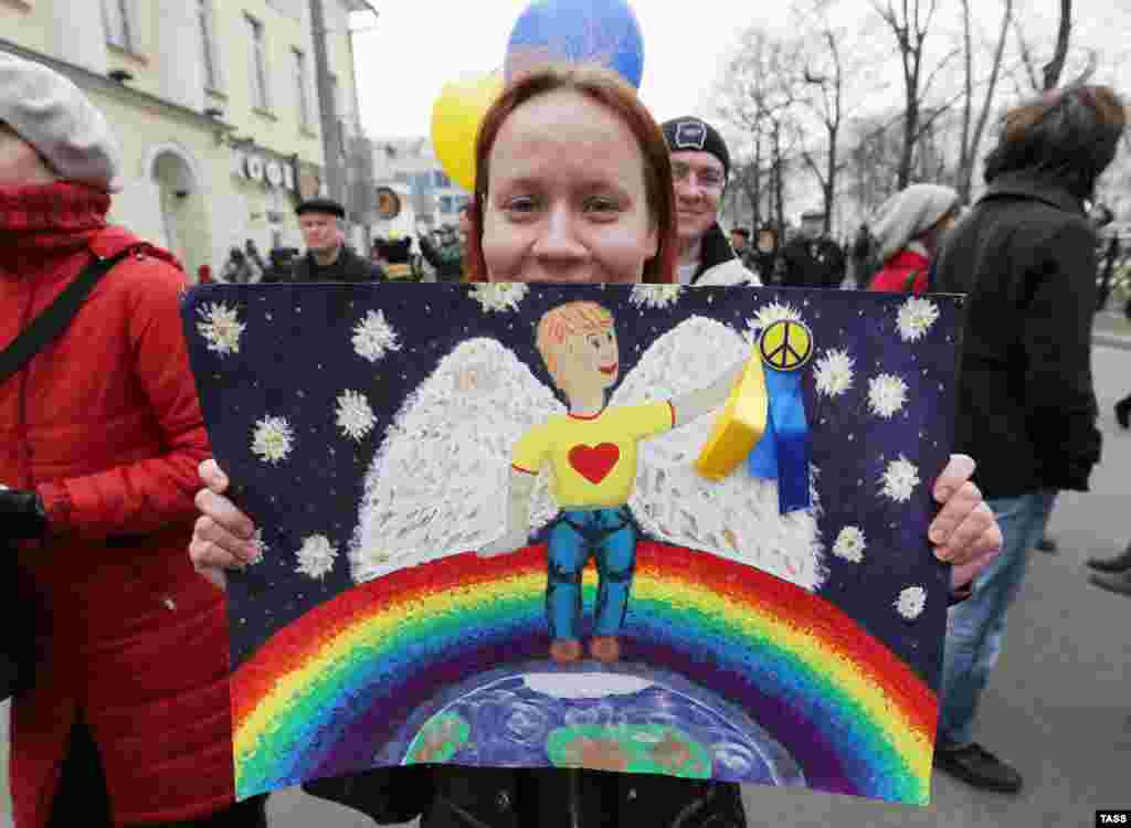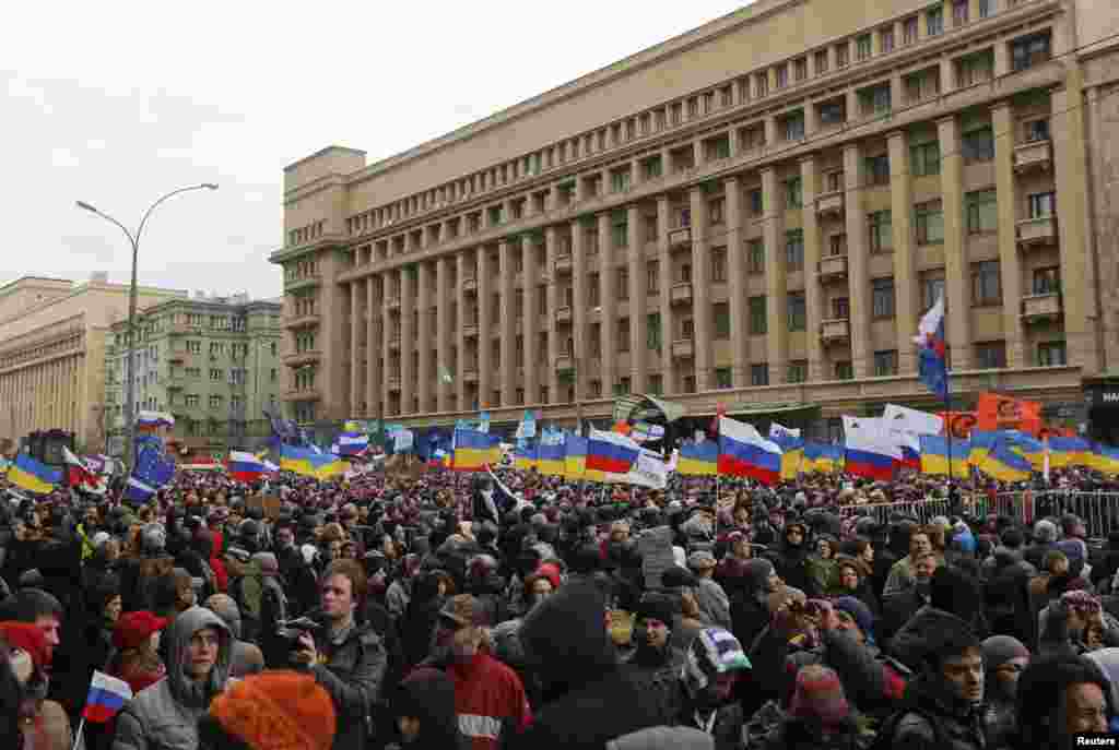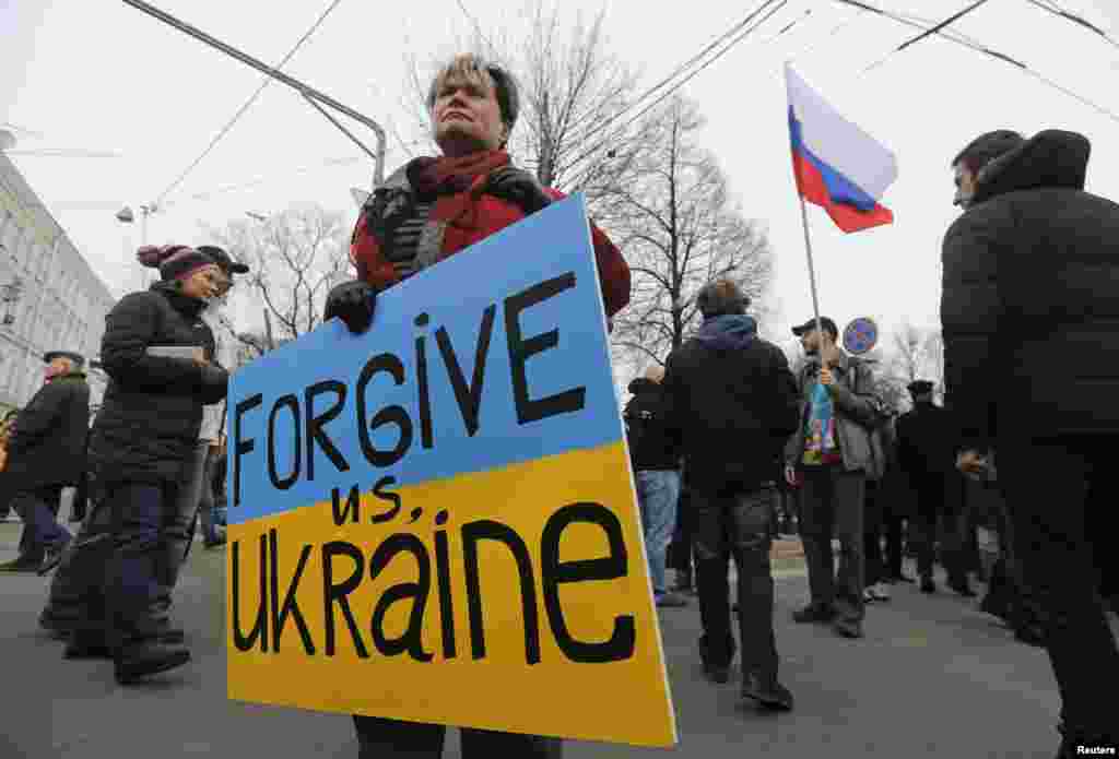 Russia - People take part in an anti-war procession and a rally in Moscow March 15, 2014.