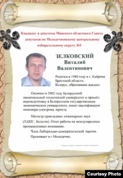 Па Маладэчанскай Цэнтральнай выбарчай акрузе № 5 зарэгістраваны Віталь Зялкоўскі, які часова не працуе. 33 гады, сябра Лібэральна-дэмакратычнай партыі. Гадавы прыбытак 10 390 805 рублёў. Маёмасьці ва ўласнасьці няма.