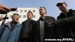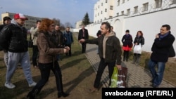 Анатоля Лябедзьку ля брамы турмы сустракалі каля 20 актывістаў АГП.