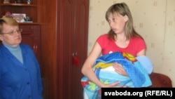 У пакой заходзіць маладая спадарыня зь дзіцем на руках, хлопчыку ўсяго два месяцы. Вось што яна кажа: