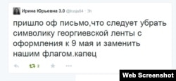 «Ніякіх георгіеўскіх стужак быць не павінна!» — гаворыцца ў лісьце
