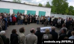 Разьвітаньне з паэтам Давідам Сімановічам, куды прыйшлі некалькі соцень чалавек, праходзіла ў рытуальнай залі шпітальнага моргу.