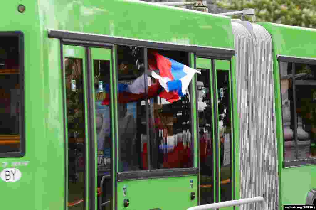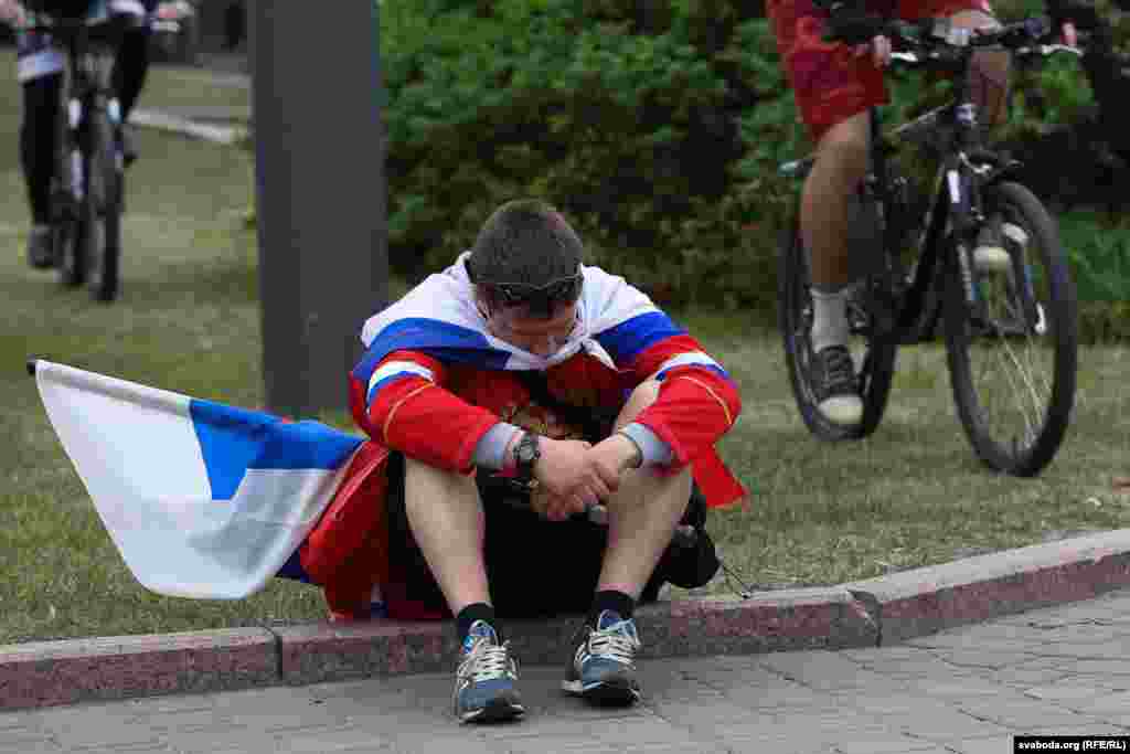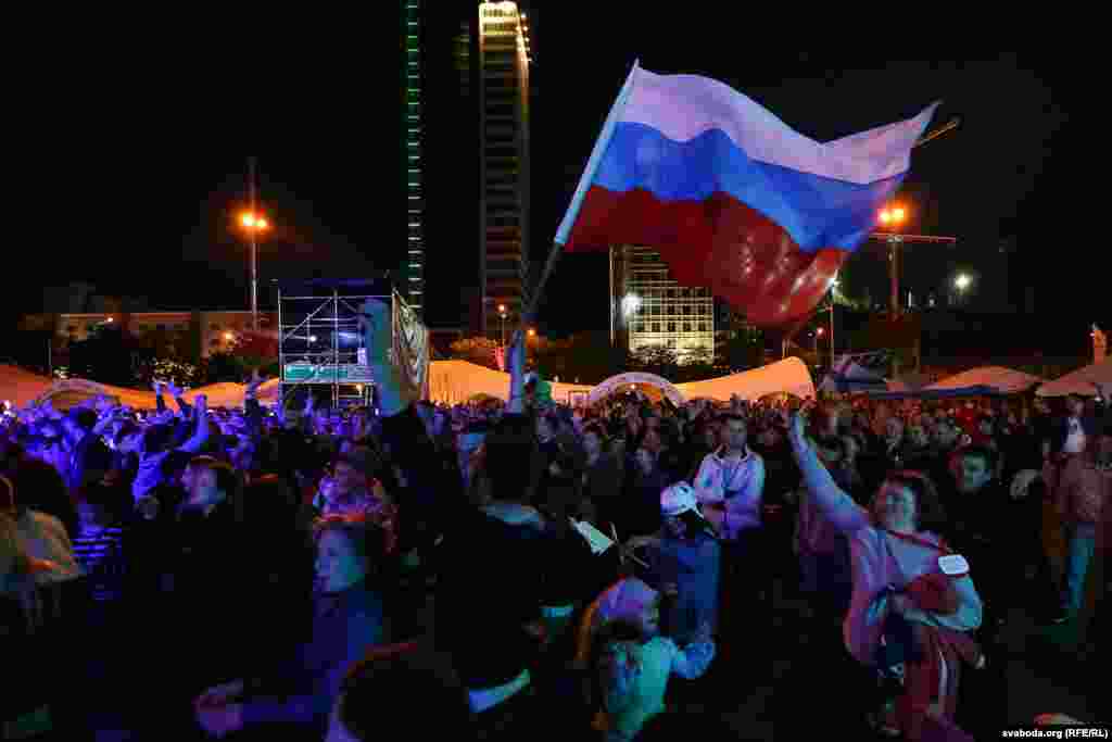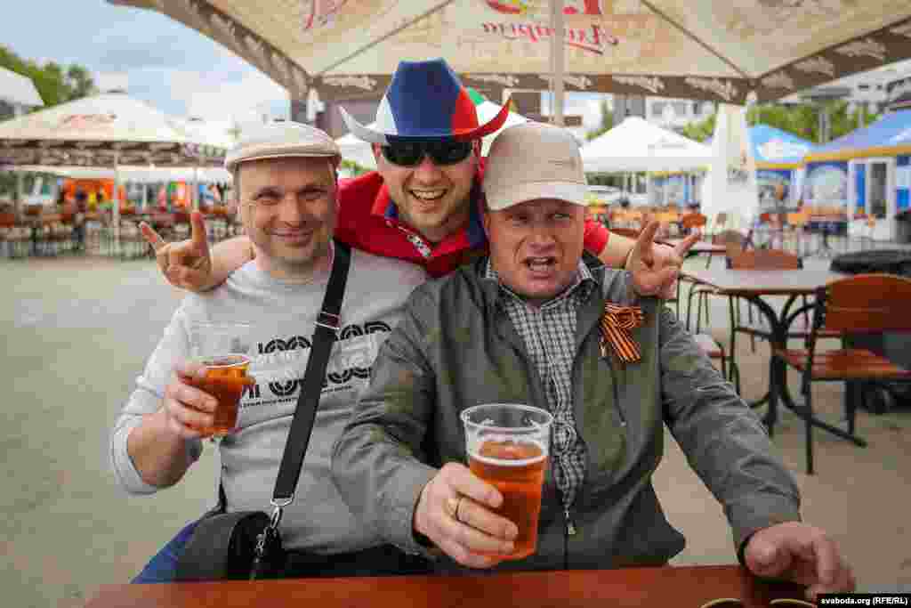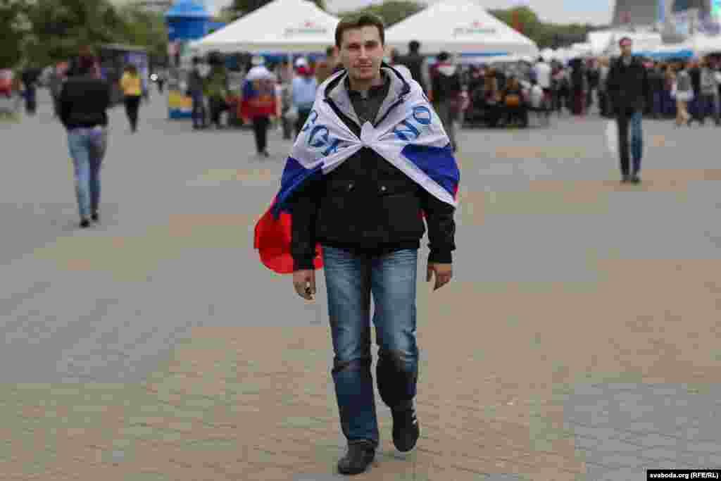 Па колькасьці заўзятараў, якія прыехалі ў Беларусь на Чэмпіянат сьвету па хакеі, расейцы займаюць першае месца. Менск прывыкае да вялікае колькасьці сьцягоў суседняй краіны. Але госьці не паводзяць агрэсіўна.