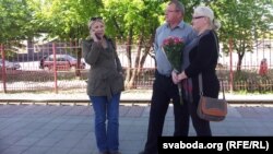 Алеся Бяляцкага сустрэлі ў Менску воплескамі і велізарным букетам кветак.