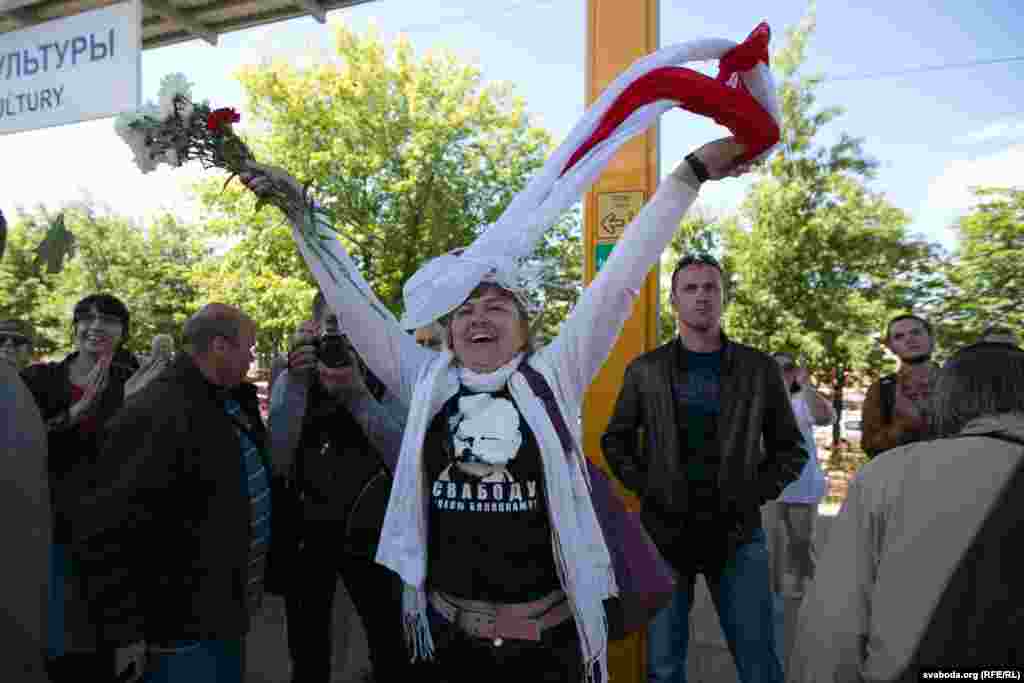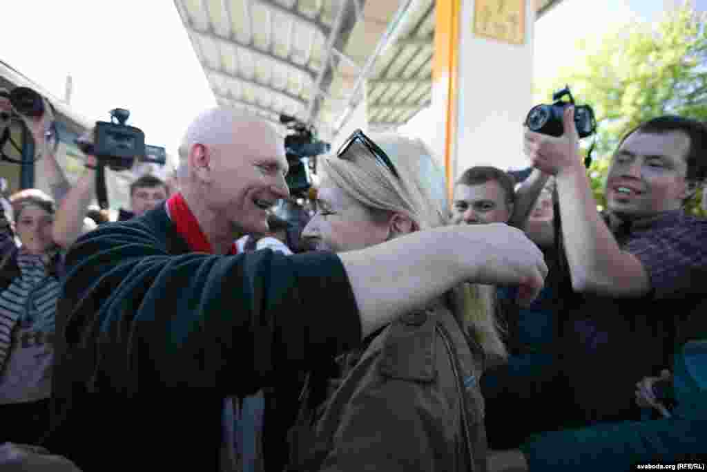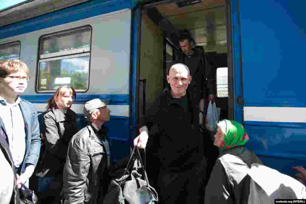 Алесь Бяляцкі, раптоўна вызвалены з турмы ў Бабруйску, а 15-й гадзіне 21 чэрвеня прыехаў у Менск.