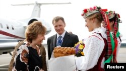 Аб 11.50 ў менскім аэрапорце прызямліўся самалёт зь Вярхоўным прадстаўніком Эўразьвязу па замежных справах і палітыцы бясьпекі Кэтрын Эштан. Яе сустракала намесьніца міністра замежных спраў Беларусі Алена Купчына. Госьцю сустракалі з кветкамі і ганаровай вартай.