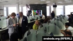 Украінскія журналісты зьдзіўленыя, што ў прэсавым цэнтры Палаца незалежнасьці на сталах піва, віно, каньяк, гарэлка. Пра гэта ў прывтнасьці піша карэспандэнтка 5 канала Вольга Сьнісарчук.