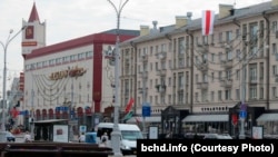 Гэткім чынам актывісты БХД вырашылі павіншаваць менчукоў з 500-годзьдзем вялікай Перамогі пад Воршай. Чартырохметровы сьцяг на доме, дзе месьціцца унівэрсам "Сталічны", правісеў больш за гадзіну.