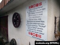 Беларускія сымбалі — на ягонай машыне, а беларуская мова — гаспадыня ў аздобе сядзібы.
