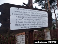 «Як прадавалі расьліны, дык вывесілі сёлетняй вясной шыльду: „Беларускамоўным зьніжка 10 працэнтаў“. Дзяўчына-прадавачка бегала да мяне кожныя тры дні, каб я зьняў шыльду. Прыяжджаюць, лямантавала, два словы скажуць па-беларуску — і дайце ім зьніжку. Я ім сам тады тлумачыў: „Калі чалавек увесь час гаворыць па-беларуску альбо спрабуе гаварыць, тым мы маем магчымасьць скінуць, аддзячыць за мову. А хітрунам, якія два словы сказалі, а потым сышлі ад нас і ўсё забылі — такім зьніжкі ня робім“. Урэшце давялося зьняць шыльду».
