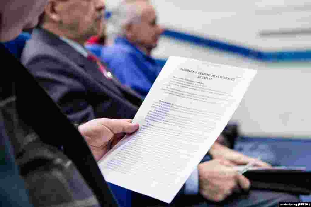 Першыя тры подпісы пад Маніфэстам паставілі Мечыслаў Грыб, Радзім Гарэцкі і вэтэран Другой сусьветнай вайны Фэлікс Шкірманкоў.