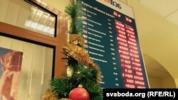 У панядзелак, 29 сьнежня, на Беларускай валютна-фондавай біржы прайшлі чарговыя таргі. Па іх выніках даляр умацаваўся адразу на 770 рублёў і складае 11800, курс эўра вырас на 940 рублёў — да 14380, расейскі рубель вырас з 202,5 да 206 беларускіх рублёў.