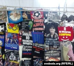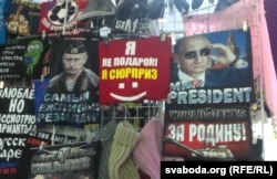 Натоўпу прыхільнікаў Уладзімера Пуціна каля прылаўку не відаць. На бліжэйшым «Стралецкім» кірмашы, таксама няма ажыятажу каля адпаведнага аддзелу. Маек з партрэтамі расейскага прэзыдэнта тут няма, але ёсьць майкі іншай тэматыкі — для прыхільнікаў «рускага сьвету». «Сьвятая Русь», «Я расеец» і іншыя подпісы суправаджаюць адпаведныя карцінкі.