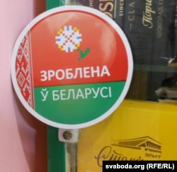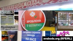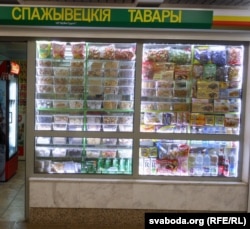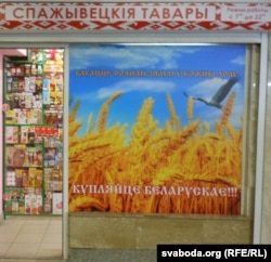 «Спажывецкія тавары» ад ««Ирже-Групп» аформленыя больш сьціпла. У самой краме можна заўважыць вядомую рэкляму «Зроблена ў Беларусі». ​