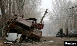 З траўня па студзень ідуць баі. Частку аэрапорту (стары тэрмінал) захапілі прарасейскія сэпаратысты. Большую частку тэрміналу ўтрымліваюць украінскія вайскоўцы, таксама як і прылеглую да аэрапорту вёску Пяскі.