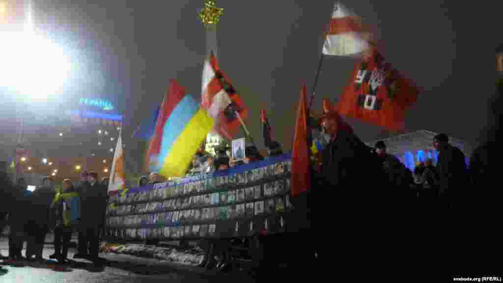 Каля 2 тысяч чалавек удзельнічалі сёньня ў акцыі памяці Жызьнеўскага, Нігаяна ды іншых актывістаў, якія былі забітыя год таму падчас пратэстаў у Кіеве. Акцыя пачалася на майдане Незалежнасьці, пасьля кароткага мітынгу яе ўдзельнікі прайшлі да вуліцы Грушэўскага, дзе працягнулі мерапрыемства.