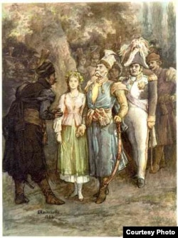 А вось фальклёрная ілюстрацыя да зьмены гістарычных эпох і прыходу рускага міру: