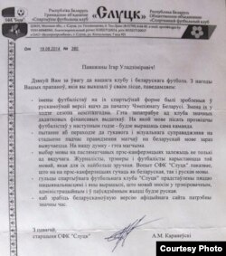 У жніўні 2014 года старшыня ФК «Слуцк» А. Каранеўскі паведаміў, што «На якой мове пісаць прозьвішчы футбалістаў у наступным (2015-м) годзе — будзе вырашаць сама каманда».