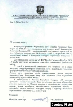 У мінулым годзе клюб ад імя намесьніка генэральнага дырэктара Ю. Крывадубскага паведамляў, што «кіраўніцтва ФК „Мінск“ плянуе ў наступным годзе ажыцьцявіць некаторыя прапановы» наконт выкарыстаньня беларускай мовы.