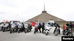 У Беларусь калёна расейскіх байкераў прыбыла вечарам 25 красавіка. У іх плянах — наведаць Курган Славы, Хатынь і Брэсцкую крэпасьць.