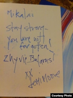 Дэмі Мур падтрымала беларускіх палітвязьняў і падпісала паштоўку Мікалаю Статкевічу. Пра гэта Андрэй Саньнікаў паведаміў на сваёй старонцы ў Фэйсбуку.