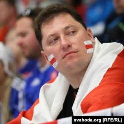 Падчас пераможнага матчу з ЗША на хакейным чэмпіянаце ў Чэхіі беларускія хакеісты - якія і самі гулялі ў бел-чырвона-белых колерах - бачылі за брамай суперніка недазволеную ў Беларусі сымболіку.