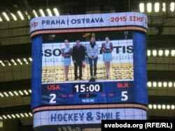 Стараньнямі чэскіх беларусаў увесь хакейны сьвет пабачыў у чацьвер на экранах тэлевізараў беларускія нацыянальныя сьцягі.