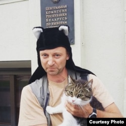 Журналіст "Белапану" Васіль Сямашка прынёс у ЦВК на рэгістрацыю ката Барсіка.