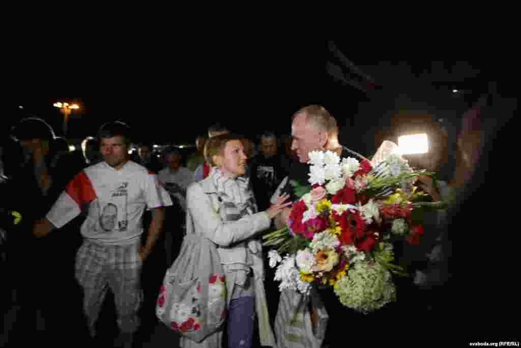 Мікалая Статкевіча на волі сустракалі некалькі сотняў паплечнікаў ФОТА