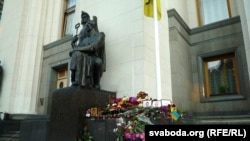 На прыступках Вярхоўнай Рады ў Кіеве людзі стыхійна стварылі мэмарыял памяці забітых падчас тэракту салдат Нацыянальнай гвардыі.