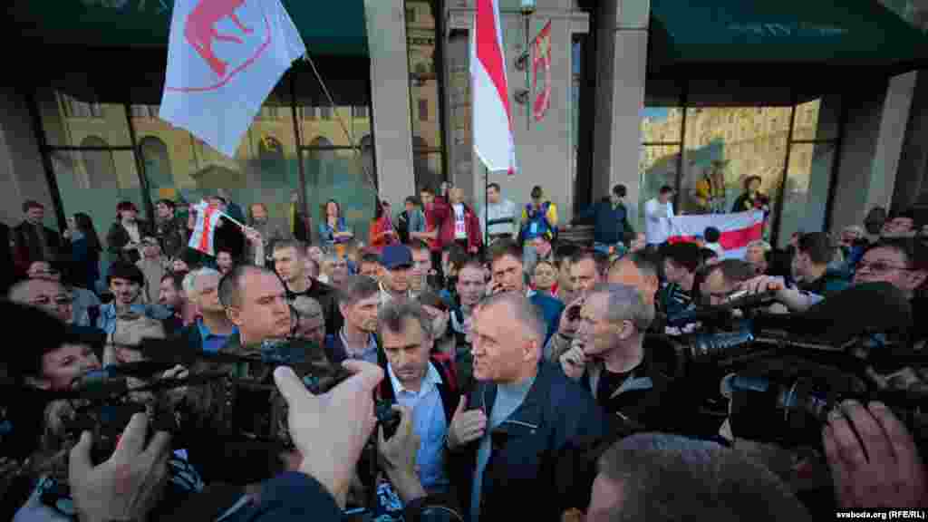 Экс-кандыдат у прэзыдэнты і палітычны вязень Мікалай Статкевіч 10 верасьня зладзіў пікет перад галоўным уваходам у ГУМ. Прыйшлі як простыя людзі, так і лідэры дэмакратычных сілаў.