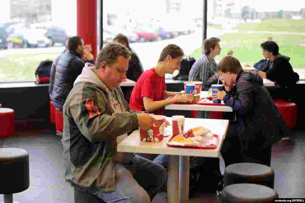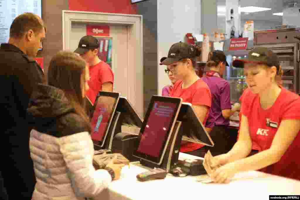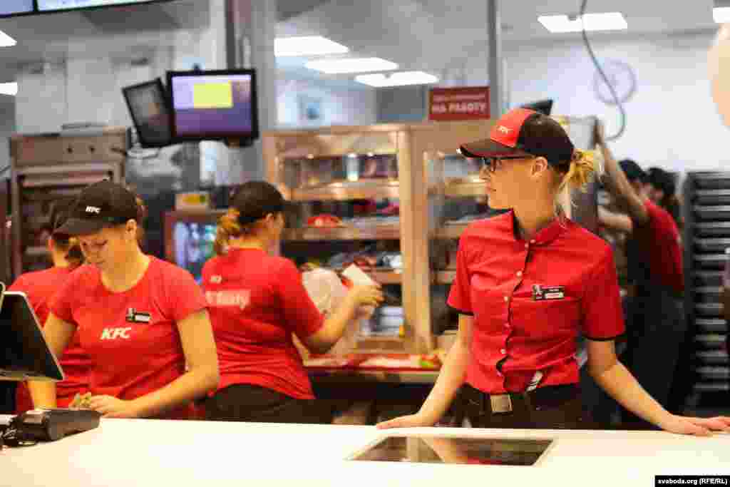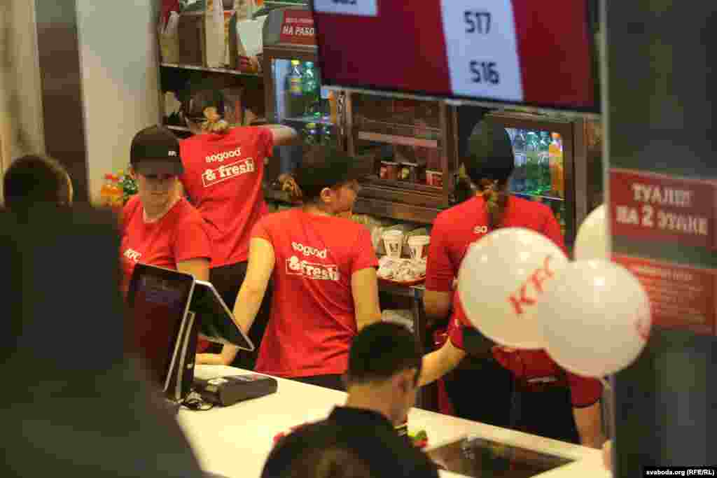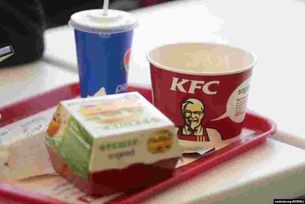 Адкрыцьцё «KFC» у Менску ня выклікала вялізных чэргаў і ажыятажу, як было падчас адкрыцьця «Бургер Кінгу», у якім дзейнічае сыстэма безьлімітных напояў. Тады ў сеціва трапілі здымкі, як людзі наліваюць у бутэлькі газіроўку.