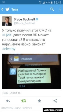 «Я толькі што атрымаў СМС з ЦВК. Нават пасол Вялікабрытаніі можа галасаваць? Я лічу, гэта парушэньне выбарчага заканадаўства».