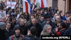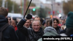 Лябедзька кажа, што вельмі важна, каб мы перасталі баяцца. «Выбараў няма, але выбар ёсьць: ня быць скотам», — кажа Анатоль Лябедзька. Людзі скандуюць: «Жыве Беларусь!»