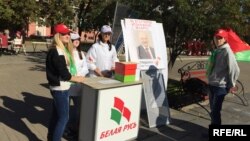 Агітацыйных пікетаў кандыдатаў на прэзыдэнцтва ў Магілёве было няшмат. На адным зь іх за Аляксандра Лукашэнку агітавалі актывісты БРСМ з плякатам, на якім надпіс быў на беларускай мове. Пагутарыць у абласным камітэце гэтай моладзевай арганізацыі пра ролю беларускай мовы ў перадвыбарчай агітацыі не ўдалося. Там спаслаліся на занятасьць, зазначыўшы, што адказ на гэтае пытаньне можна знайсьці на сайце арганізацыі.