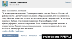 Назіральнік выклікаў міліцыю і напісаў скаргу, адбыўся невялікі канфлікт. Старшыня камісіі папрасіў не паведамляць пра інцыдэнт.
