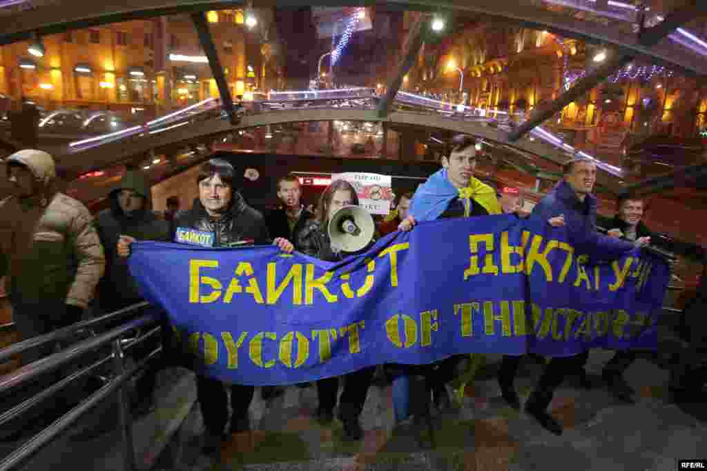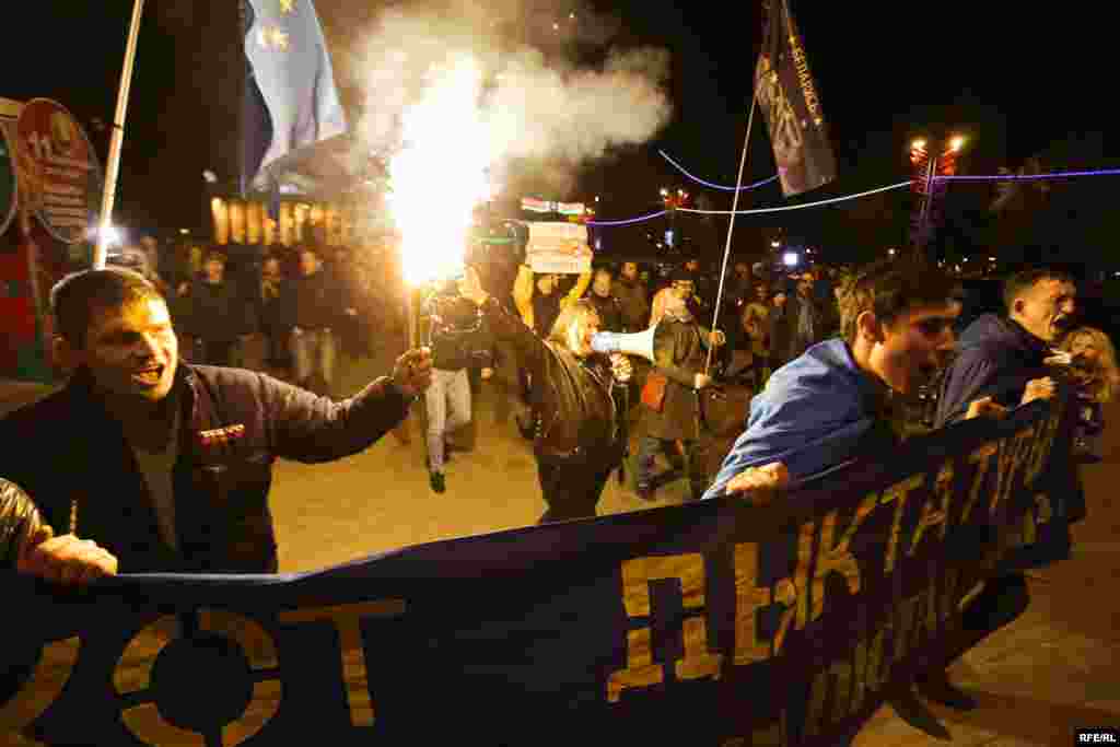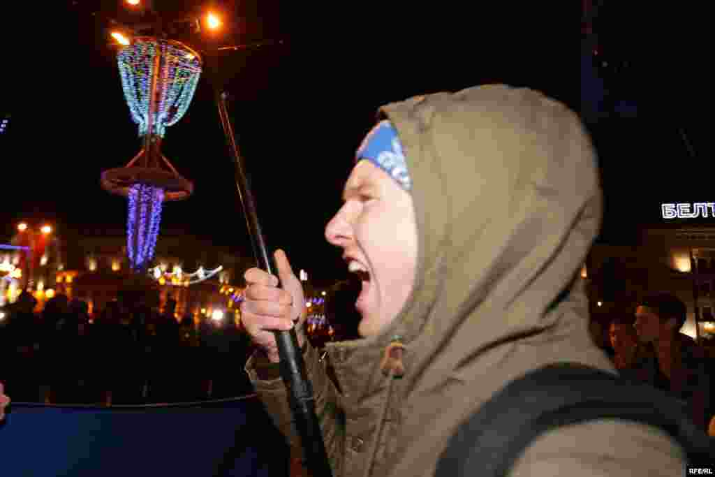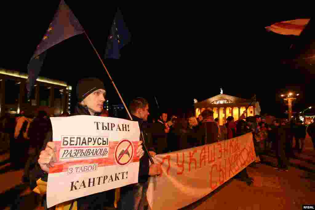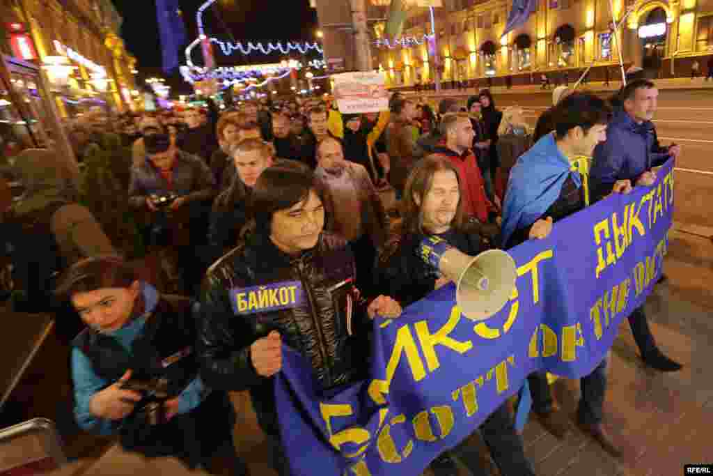 Некалькі соцень чалавек сабраліся на Кастрычніцкай плошчы пратэставаць супраць фальсыфікацыяў выбараў. Актывісты разгарнулі бел-чырвона-белыя сьцягі і расьцяжкі супраць дыктатуры. Яны прайшлі шэсьцем да плошчы Незалежнасьці, дзе акцыя скончылася супольнай малітвай