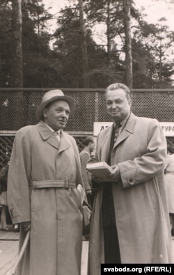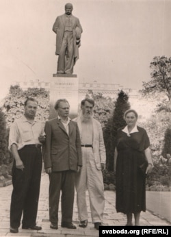 6. З Васілём Віткам (у цэнтры) і Ўладзімерам Дубоўкам у Кіеве перад помнікам Кабзару.
