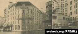 2. Гатэль «Мадэрн» у Канах. Правей – гараж у двары гатэлю. Крыжам пазначанае акно, зь якога выпаў пісьменьнік.