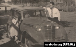 10. У вышыванцы каля свайго «Масквіча» ў роднай вёсцы Міхалкі на Мазыршчыне.
