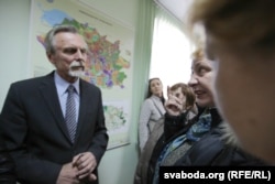 «А мы хочам паслухаць, што яны будуць казаць журналістам», — выкрыквае кабета з чаргі.