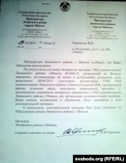 Як напісана ў адказе з пракуратуры, «матэрыялы зь пісьмовымі ўказаньнямі» накіраваныя зноў у міліцыю для дадатковай праверкі.