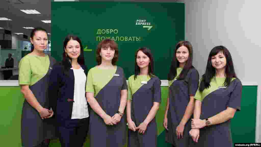 Генэральны дырэктар Pony Express у Беларусі Мікалай Герасімаў, амбасадар Маціньш Вірсіс, дырэктарка дэпартамэнту візавых сэрвісаў Pony Express Натальля Яўсеенка
