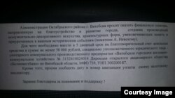 Ад імя адміністрацыі Кастрычніцкага раёну на кірмашах Віцебска распаўсюджваюць пісьмовае патрабаваньне — паперкі з рэквізытамі банкаўскага рахунку, на які трэба пералічыць «сродкі ў суме, ня меншай за 50 тысяч рублёў».
