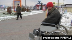 Інвалід: «Зайцаў Эдуард Уладзіміравіч, 1968 году нараджэньня. На вуліцы апынуўся, бо няма ані дома, анічога. Ногі страціў — адмарозіў ужо гады два таму. Во, добры чалавек вазок падараваў. Што яшчэ сказаць? Гаварыць жа няма чаго. Вось так патроху й жыву».